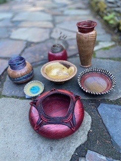 Dean, a Master Wood Turner, has been creating artistic and practical items on his lathe since age 11 when his grandpa taught him how to turn his first bowl. Dean also turns Alabaster to make bowls and vases.